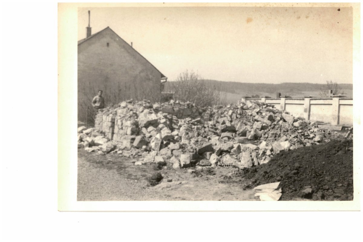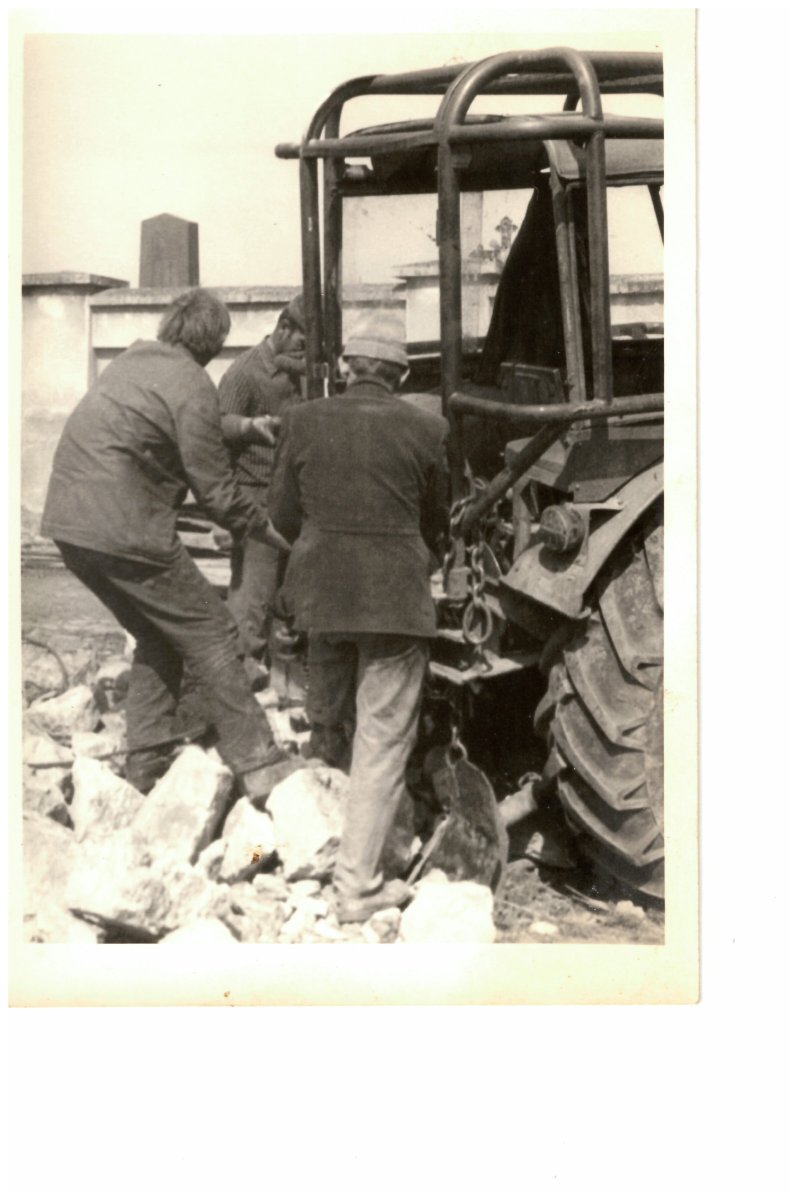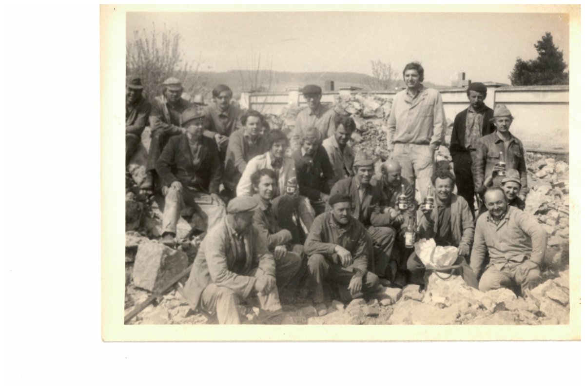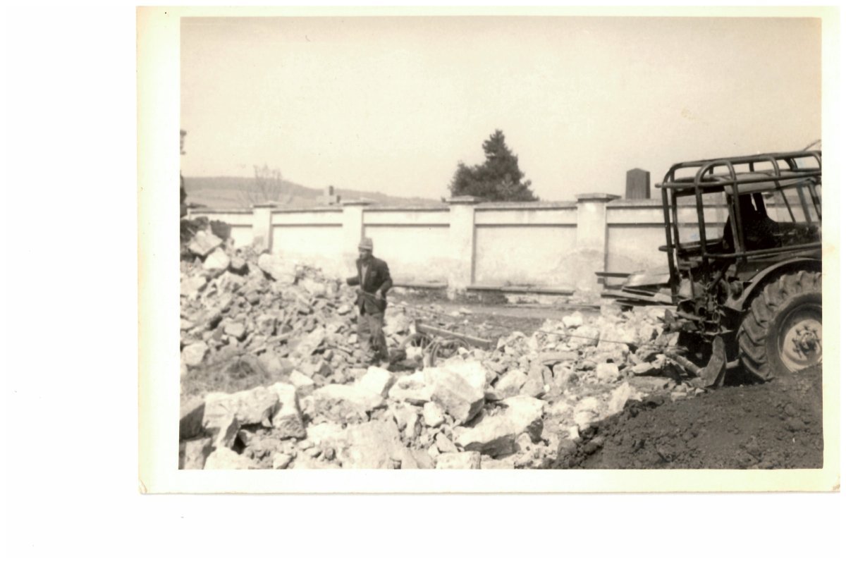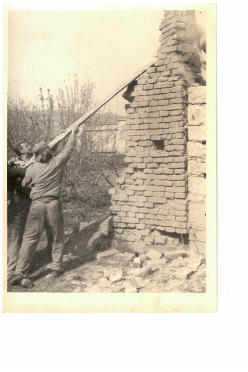 Brigáda na likvidaci stodoly na ul. Svitavská (vedle hřbitova) 1974